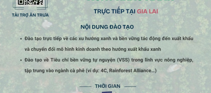 Đây là cơ hội đặc biệt dành cho các doanh nghiệp nông nghiệp tại khu vực Tây Nguyên. Tham gia khóa đào tạo, doanh nghiệp sẽ được trang bị kiến thức để hiểu rõ các tiêu chuẩn bền vững quốc tế của những thị trường xuất khẩu đầy tiềm năng nhưng cũng nhiều yêu cầu khắt khe. Đồng thời, doanh nghiệp sẽ được trực tiếp ứng dụng công cụ đánh giá mức độ sẵn sàng xuất khẩu xanh, từ đó nhận diện điểm mạnh – điểm hạn chế của doanh nghiệp mình. Về lâu dài, các doanh nghiệp sẽ tự tin điều chỉnh mô hình kinh doanh theo hướng xuất khẩu xanh. Toàn bộ chi phí của chương trình do dự án GEVA tài trợ.