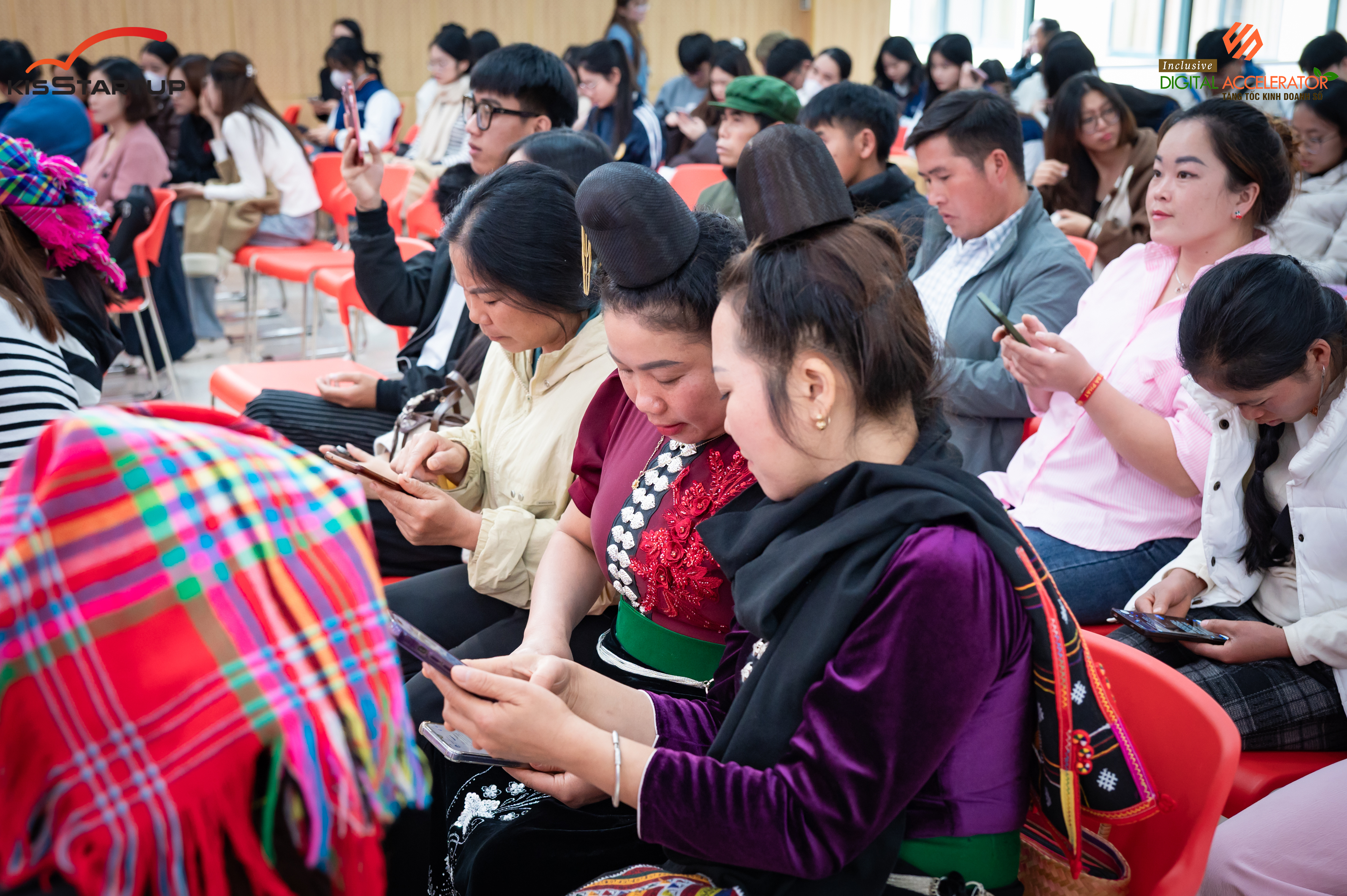 200 đại biểu đến từ Lào Cai, Sơn La và Hà Nội đã cùng hội tụ: hơn 50 doanh nghiệp và hợp tác xã, hàng trăm sinh viên, gần 10 đơn vị cung cấp dịch vụ chuyển đổi số cấp địa phương và quốc gia, cùng hàng chục giảng viên đại diện từ hơn 8 trường đại học như Học viện Ngân hàng, USTH, Học viện Tài chính, Đại học Giao thông Vận tải, Đại học Thương mại, Đại học Quốc gia Hà Nội… Tất cả cùng gặp nhau trong một không gian rất thật: nhu cầu thật – bài toán thật – hành động thật.
